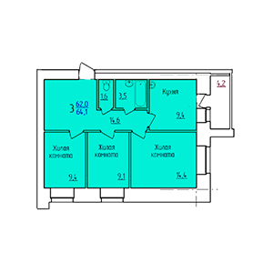 от 64 кв.м.